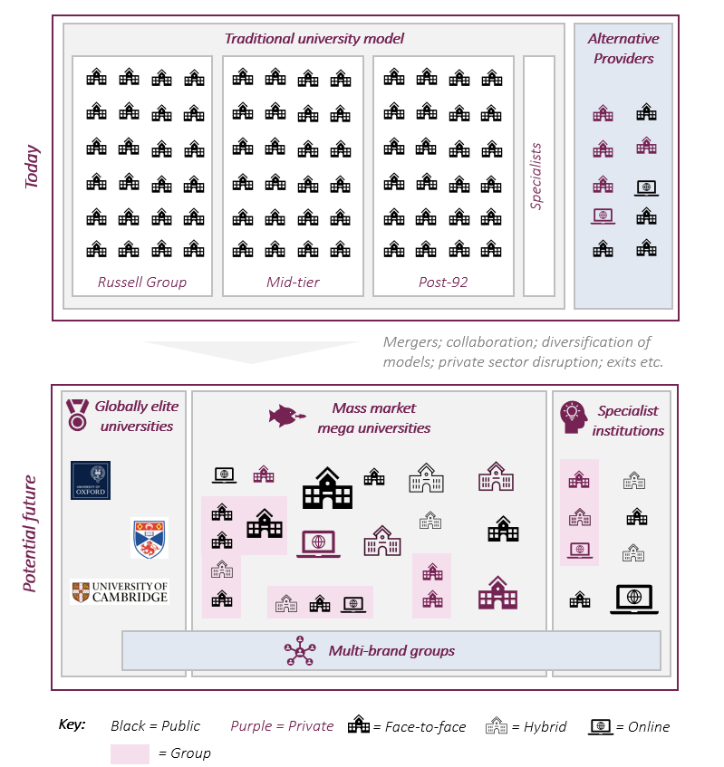 UK universities are facing significant and sustained financial challenges in the face of flat UK fees and pressure on in-bound international student recruitment. This will be compounded by longer-term headwinds including forecast demographic decline from 2030, changing student attitudes to university and its perceived value for money, and technological disruption.